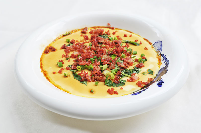 4.取出后,加入幾滴橄欖油,適量的蔥花、撒上切好的培根丁即可。