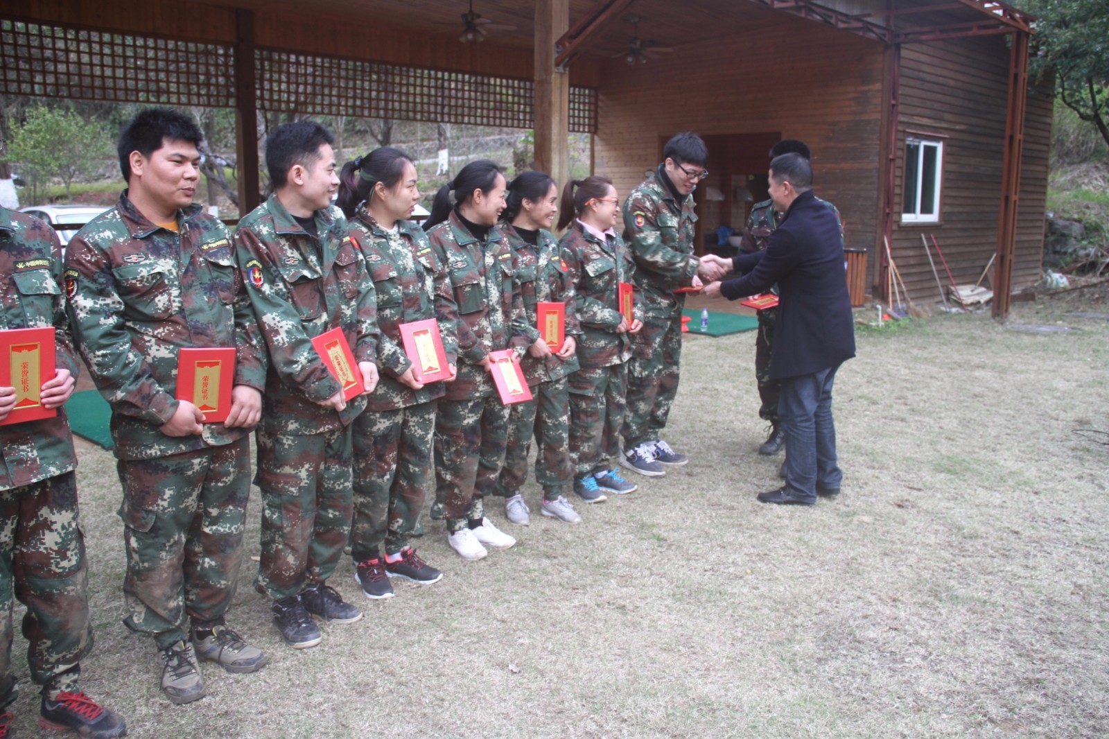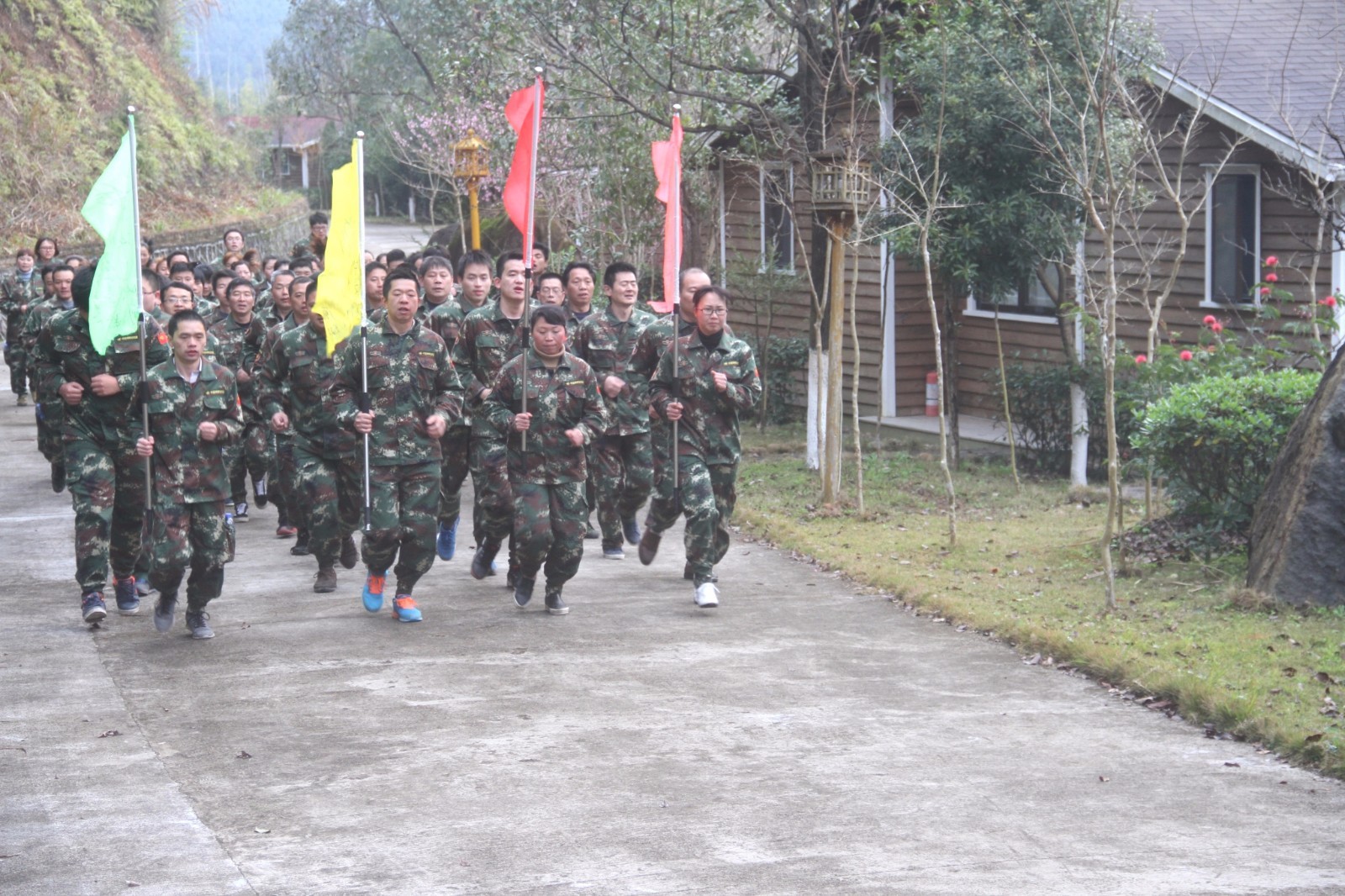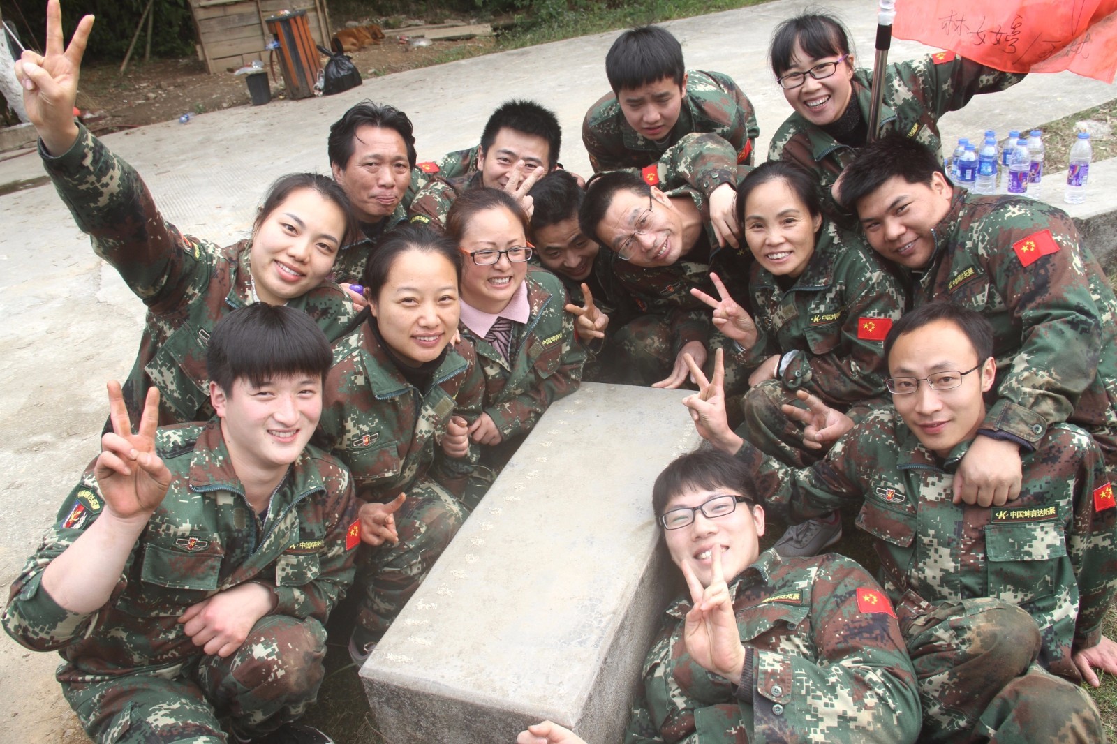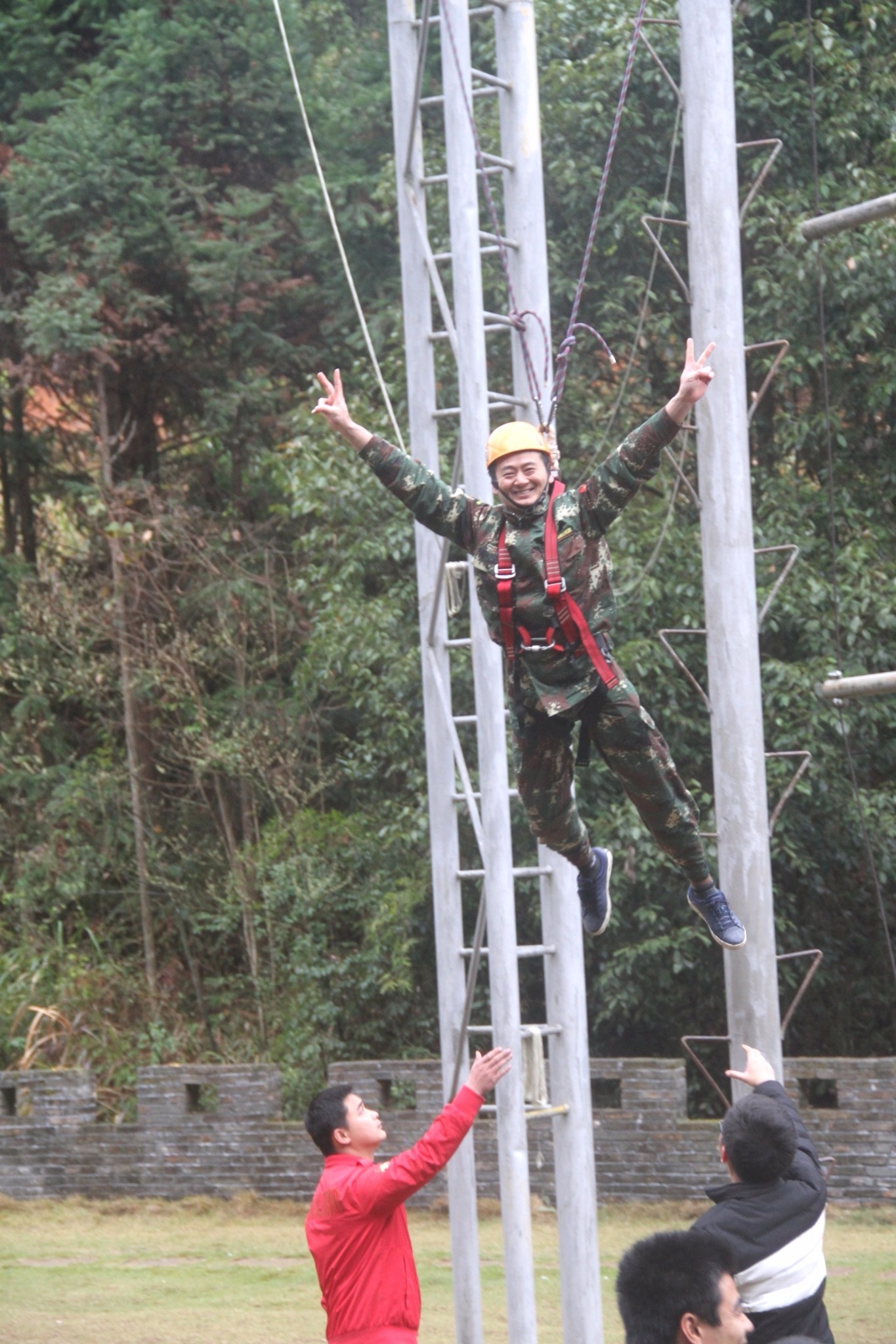 第一天團隊統一著裝迷彩服,進行團隊組建并建立統一的團隊目標。參加心情撲克牌、高空抓桿、盜夢空間、七巧板等項目。