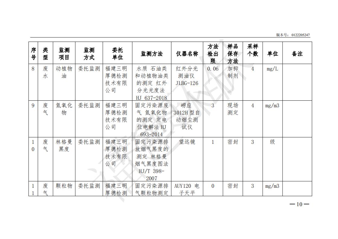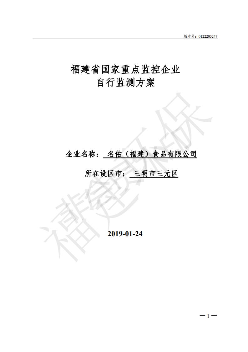 名佑(福建)食品有限公司2019年度環(huán)境自行監(jiān)測(cè)方案信息